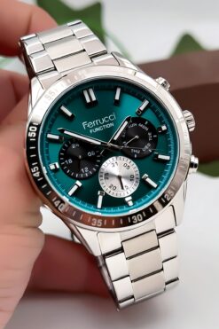 Ferrucci Function Erkek Kol Saati – Gümüş Renk Kasa Ve Çelik Kordon, Yeşil Kadran Zmfer063
