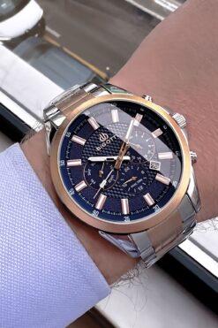 Bigotti Özel Kutulu 5 ATM Su Geçirmez Erkek Kol Saati Rose Gumus Çelik Kordon + Hediye Bileklik BME2027C2
