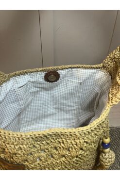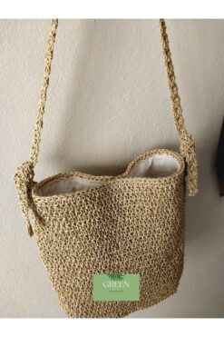 Green Bağlama askılı el örgüsü hasır omuz çantası astarlı shopper model hediyelik yazlık