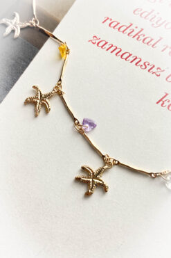 roshel Çelik Y Kolye Taşlı Kalp,Kelebek ve Deniz Kabuğu Figürlü