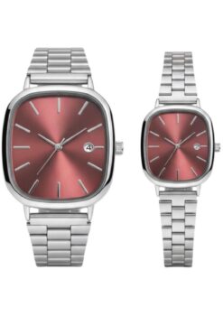 ÇENÇEN Bordo Kadran Gümüs Kordon Yeni Sezon Özel Tasarım Takvimli Sevgili Çift Kol Saatleri