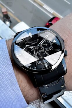 Ferrucci Function Erkek Kol Saati 3atm Su Geçirmez Siyah Renk Çelik Kordon Hediye Bileklik Fre2049c4