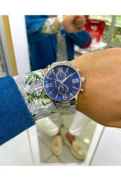 İSTLİV Erkek Gümüş Renk Kordon Lacivert Kadran Analog Kol Saati