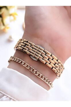 FERRO Küçük Kasa Vintage Model Çelik Kordon İyon Kaplama Kasa Kadın Kol Saati+Bileklik B.FRV256.A02
