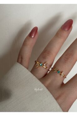 KİLİGİSTANBUL GOLD RENK 2'Lİ YEŞİL TAŞLI YÜZÜK