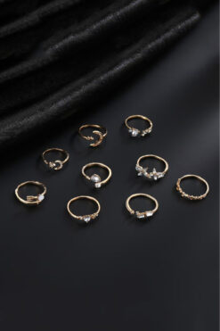 Sortie Aksesuar Inci Ve Zeytin Dalı Figürlü 10'lu Yüzük Kombini 023