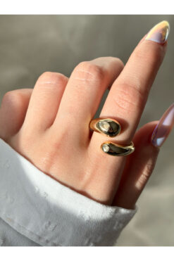 The Collection 3'lü Kombin Kahverengi Taşlı Gold Vintage Ayarlanabilir Yüzük Set
