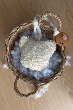 BABYHANDLOVE Öpme Beni Kumaş Ahşap Klipsli Ekru Bebek Emzik Askısı
