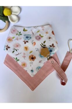sbbaby Müslin % 100 Organik Bebek Önlük (Yakalık)Ahşap Klipsli Emzik Askısı 5′ li Set