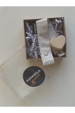 KARAMİLA Ahşap Klips Bebek Emzik Askısı – Bebek Emzik Zinciri %100 Pamuk Bebek Hediyelik
