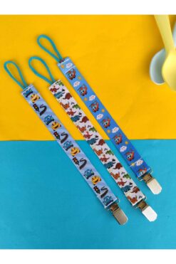 lucky baby Emzik Askısı 3 lü Set Plastik Klipsli Emzik Tutucu %100 Pamuklu Star Seri