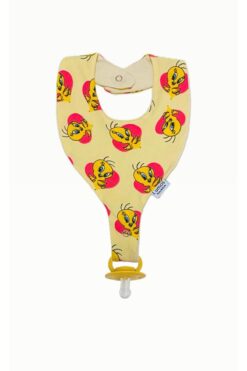 Lumos Trade Emzik Tutucu Mama Önlüğü – Kalpli Tweety %100 Pamuk Organik Kumaş Emzik Askısı