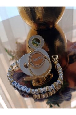 Sahi Aksesuar Isimli Gold Kaplama Beyaz Taşlı Silikon Bebek Emzik ve Zincir Seti – TYBEZYIB1769