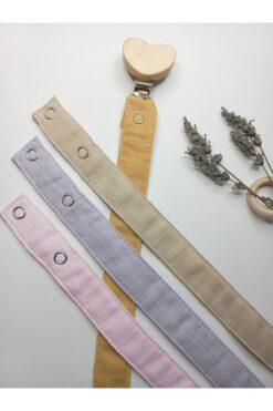 sbbaby Müslin Bebek Emzik Askısı Kalp Ahşap Klipsli 4’lü Set Emzik Zinciri HARDAL /BEJ/LİLA/PEMBE