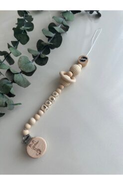My Kids Room Doğal Ahşap Emzik Zinciri – Isimli Emzik Askısı Ahşap Emzik Zinciri Emzik Tutucu