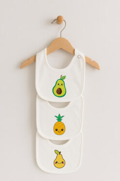Bebe wini %100 Pamuk Penye Çift Katlı 3’lü Meyve Desenli Mama Önlüğü