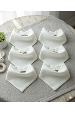 sağel %100pamuk 6lı Müslin Yakalık Beyaz Mama Önlüğü Çift Katlı Iki Çıtçıtlı Unisex (FULAR, SALYA ÖNLÜĞÜ)