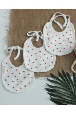 Bebe wini %100 Pamuk Kırmızı Kalpli 3 Lü Bebek Önlüğü