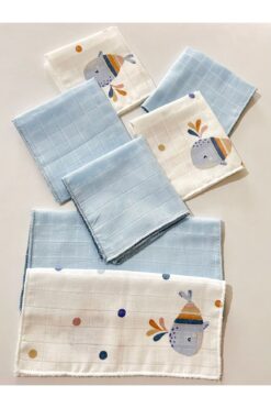 Sevza Kids %100 Pamuk 7’li Müslin Bebek Ağız Mendili Dreamy Collectıon Yunus-Mavi