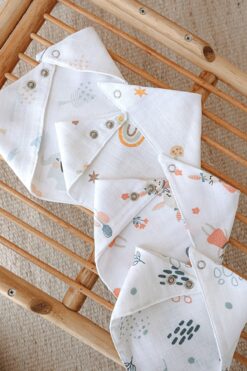 3Baby 12 Adet %100 Organik Pamuk Çift Katlı Iki Çıtçıtlı Müslin Kız Bebek Fular & Salya Önlük