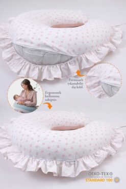 Umaybebek Emzirme Yastığı Minderi – %100 Pamuk – Pudra Fırfırlı