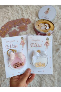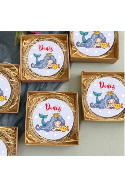 Süsler Ahşap Yıldız Anahtarlık Bebek Hediyeliği Deniz Kızı Konsept 30 Adet – Kuşe Kalın Kart
