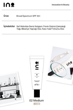INO Beauty Nemlendirici Güneş Kremi SPF+50 02 MEDUIM Cilt Tonu Eşitleyici (Saf Kolajen)