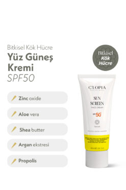 C’LOPIA BEAUTY Yüz Güneş Kremi SPF 50+ UVA & UVB Koruma Bitkisel Kök Hücre Mineral Filtre Zinc Oxide