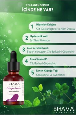 bhava cosmetics Kolajen Serum Collagen Cilt Yüz Serumu Sıkılaştırıcı Ve Nemlendirici Hyaluronik Asit Aloe Vera