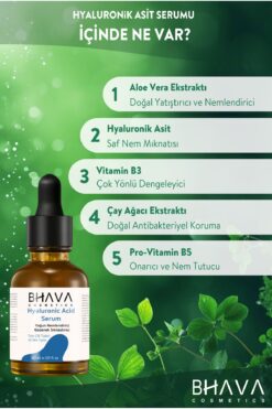 bhava cosmetics Hyaluronik Asit Serum Niacinamide Kolajen Gözenek Sıkılaştırıcı Serum Nemlendirici 30 ml