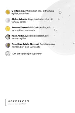 Heraflora Pure Light Aydınlatıcı, Leke Karşıtı Cilt Serumu 30 ml C Vitamini, Arbutin, Ananas Eks, Kojik Asit