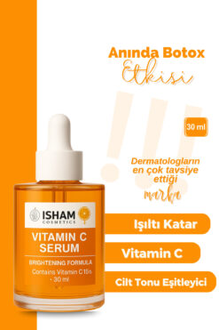 isham cosmetics Leke Karşıtı Aydınlatıcı Vitamin C Serum Ascorbic Asit, Ferulic Asit, Vitamin B5, Niacinamide 30 ml