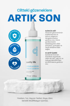 Quality Life Glikolik Asit Tonik – AHA BHA – Gözenek Sıkılaştırıcı Ölü Deri Temizleyici Arındırıcı Yüz Temizleme