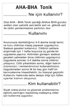 DOA KOZMETİK AHA-BHA %3 Tonik (%1 Salisilik, %1 Laktik, %1 Glikolik Asit)