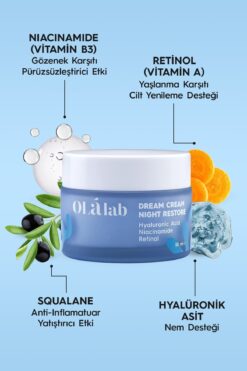 OlaLab Yaşlanma Karşıtı Yenileyici Nemlendirici Retinol Gece Yüz Kremi 50 ml