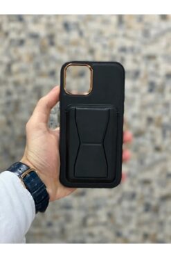 ERMER Apple iphone 11 Pro Kılıf Kartlıklı Deri Görünümlü Stant Olabilen Metal Çerçeveli Kapak Kilif