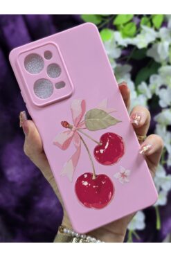 Magic Ring Redmi Note 12 PRO 5G Uyumlu Kiraz Desenli Pembe Silikon Telefon Kılıfı