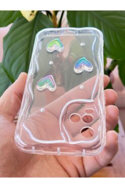 Fibaks Vivo Y21/Y21S Kılıf 3D Kalpli İnci Tasarımlı Desenli Kamera Korumalı Şeffaf Silikon Kapak