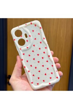 Fibaks Realme C55 Kılıf Kamera Korumalı Dalga Kenarlı Kırmızı Kalp Desenli Silikon Kapak