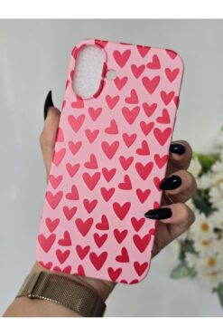 Magic Ring Iphone 16 PLUS Uyumlu İçi Kadife Lansman Kalp Baskılı Kılıf