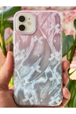Fibaks Apple Iphone 12 Kılıf Parlak Fiyonk Desenli Darbe Emici Kamera Çıkıntılı Renkli Silikon Kapak