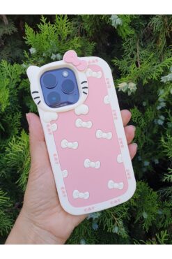Aksesuarda Moda iPhone 13 Pro Max Uyumlu PAPYONLU HAMUR SİLİKON KEDİ KILIF