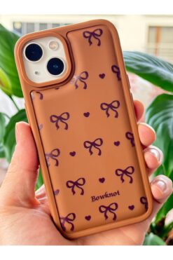 Fibaks İphone 13/14 Kılıf Yumuşak Dokulu Fiyonk Desenli Kahverengi Yumuşak Koruyucu Silikon Kapak