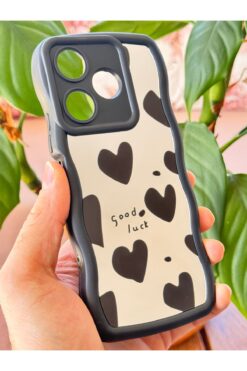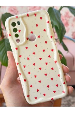 Fibaks Xiaomi Redmi Note 8 Kılıf Kamera Korumalı Dalga Kenarlı Kırmızı Kalp Desenli Silikon Kapak
