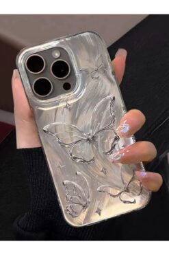 Fibaks Galaxy A16 Uyumlu Kılıf Fiyonk Desenli Şeffaf Simli Gümüş Kamera Çıkıntılı Parlak Kapak