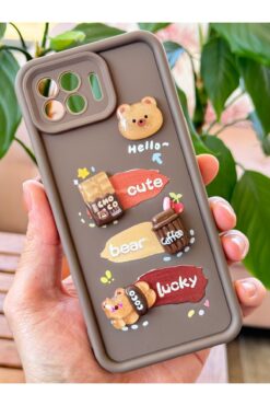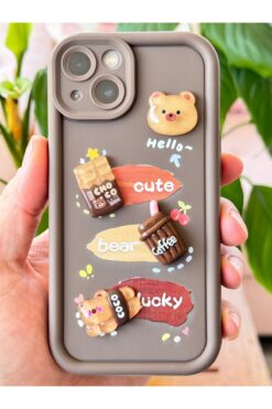 Fibaks Apple iPhone 14/13 Kılıf Kamera Korumalı Ayıcık Kahve Figürlü Renkli Yumuşak Silikon Kapak