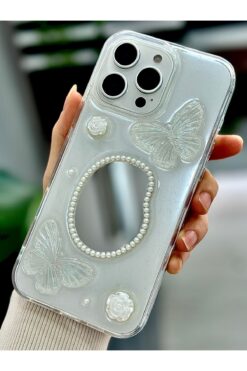 Go Aksesuar Iphone 16 Promax Uyumlu Aynalı Kelebek Tasarımlı Silikon Kılıf