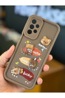 Fibaks Samsung Galaxy A16 Uyumlu Kamera Korumalı Coffee Kurabiye Figürlü Siyah Yumuşak Silikon Kapak