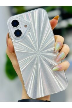 Go Aksesuar Iphone 16 Uyumlu Gümüş Prizma Tasarımlı Silikon Kılıf