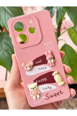 Fibaks Xiaomi Redmi Note 14 4G Kılıf Kamera Korumalı Tavşan Figürlü Pembe Yumuşak Silikon Kapak